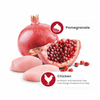 Ingredients: Chicken (fresh and dehydrated 60%), whole spelt, whole oats, chicken fat, dehydrated pomegranate (0.5%), fish oil, dried carrots, alfalfa, inulin, yeast, psyllium, dried blueberries, spinach powder, turmeric, vitamins and minerals.